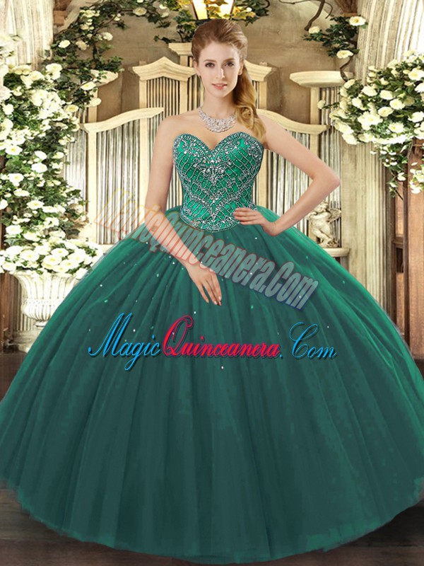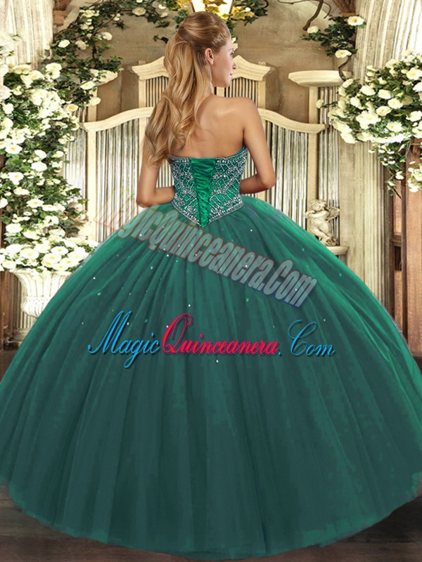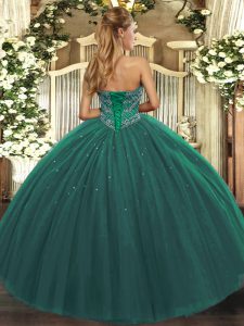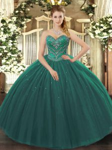 Dark Green Sweetheart Lace Up Beading Ball Gown Prom Dress Sleeveless
