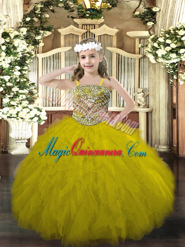 Dazzling Floor Length Ball Gowns Sleeveless Olive Green Pageant Gowns Lace Up