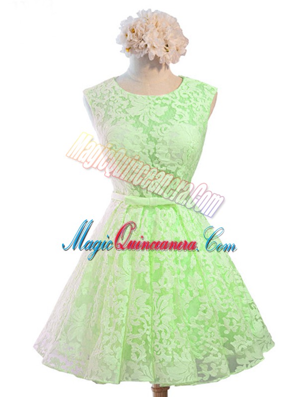 , Dazzling Lace Lace Up Scoop Sleeveless Knee Length Damas Dress Belt