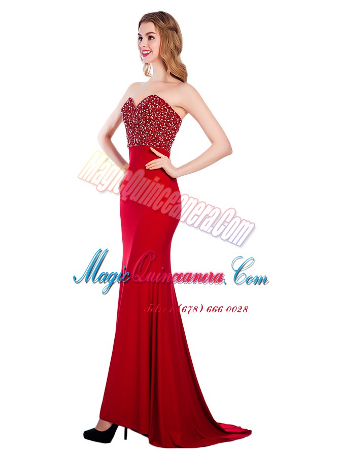 Dazzling Mermaid Sleeveless Sweep Train Zipper With Train Beading Mother Of The Bride Dress