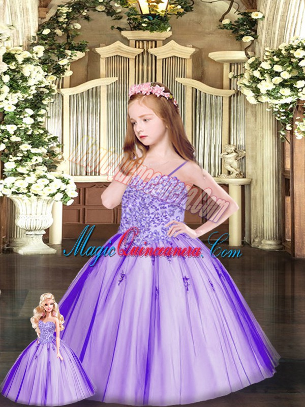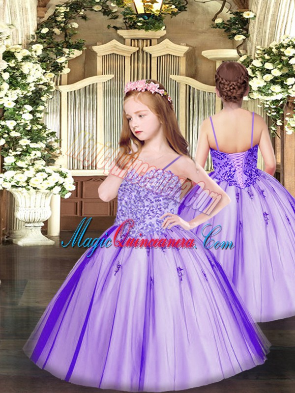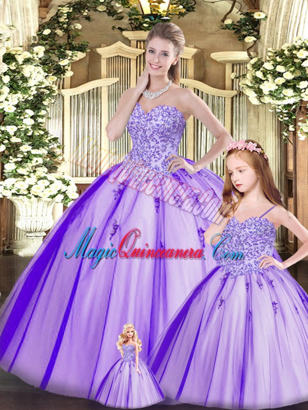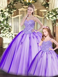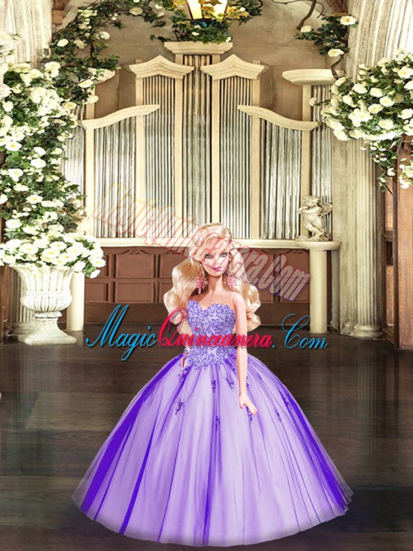 Dazzling Purple Tulle Lace Up Sweetheart Sleeveless Floor Length Quinceanera Dress Beading