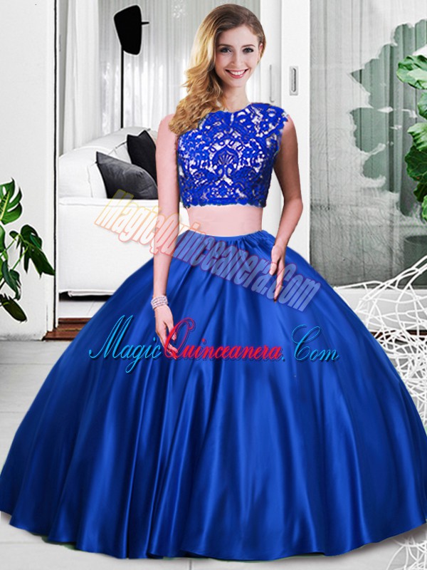 Dazzling Royal Blue Two Pieces Lace and Ruching Sweet 16 Quinceanera Dress Zipper Taffeta Sleeveless Floor Length