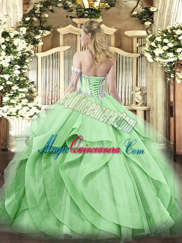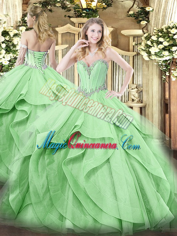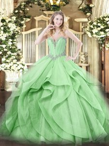 , Dazzling Sleeveless Beading and Ruffles Lace Up Sweet 16 Dresses