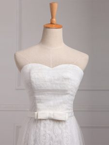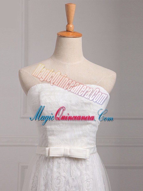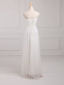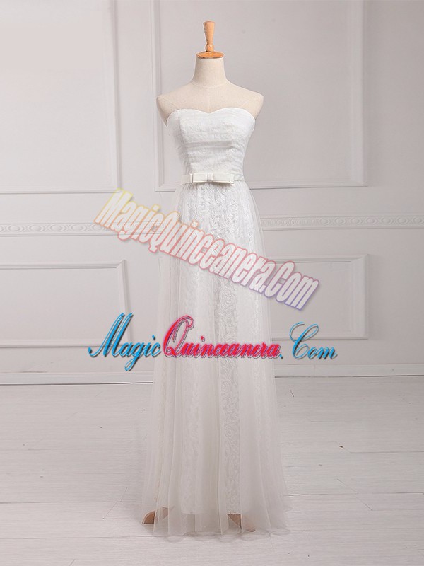, Dazzling Sleeveless Floor Length Belt Lace Up Vestidos de Damas with White