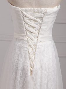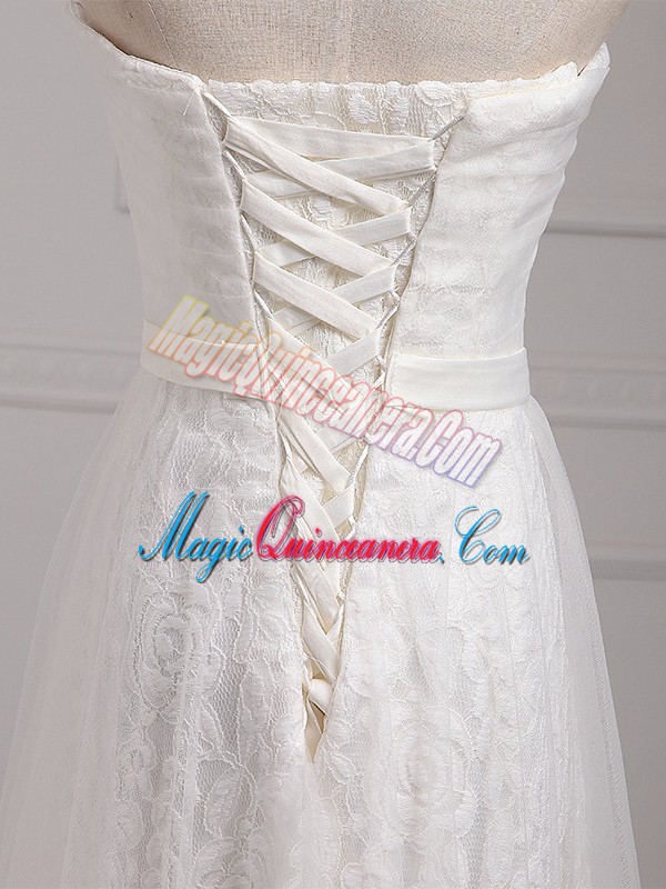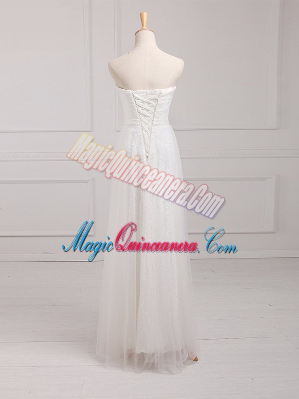 Dazzling Sleeveless Floor Length Belt Lace Up Vestidos de Damas with White