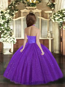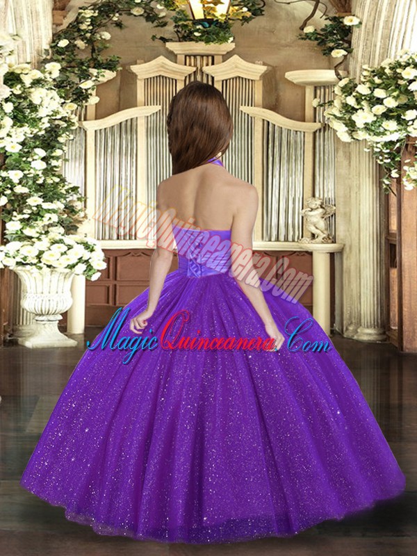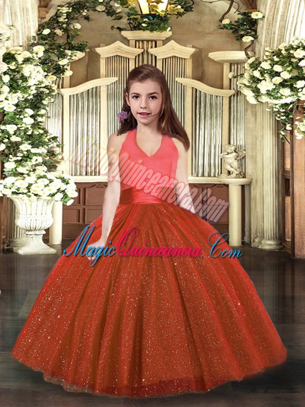 Dazzling Sleeveless Tulle Floor Length Lace Up Kids Formal Wear in Rust Red with Ruching