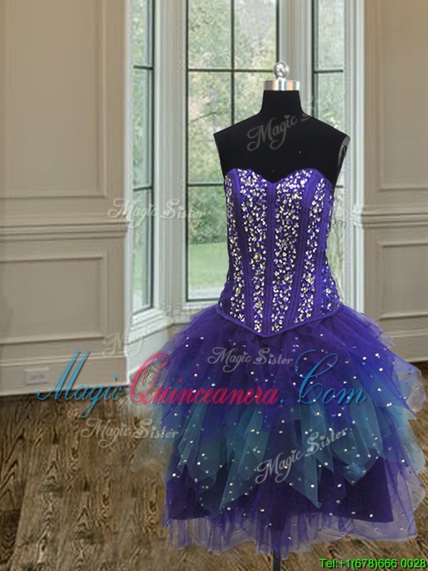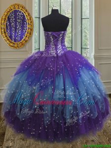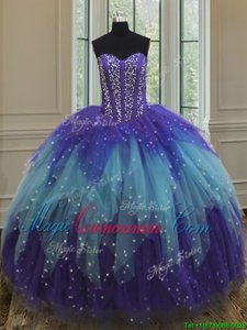 Dazzling Three Piece Sleeveless Floor Length Beading and Ruffles and Sequins Lace Up 15th Birthday Dress with Multi-color