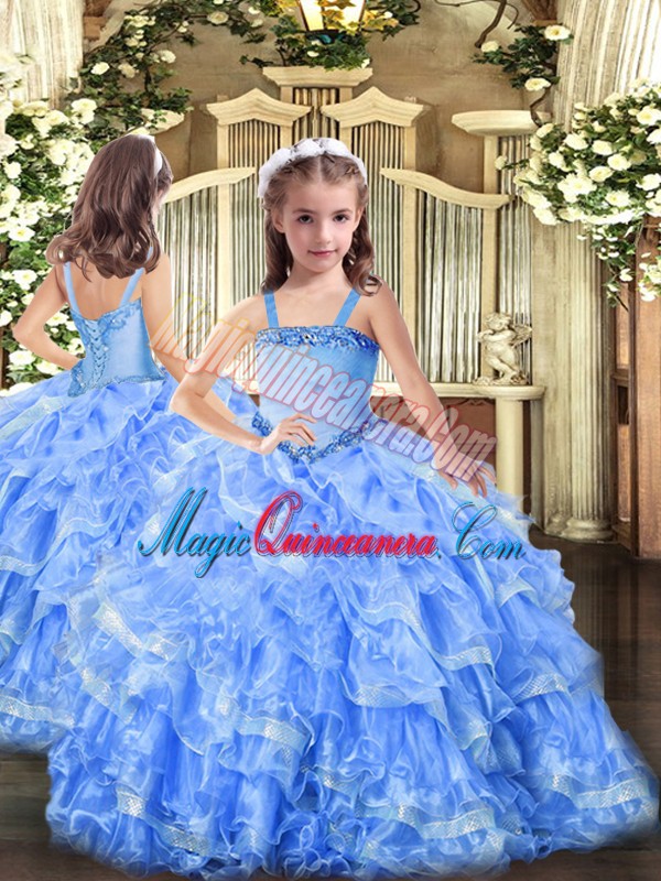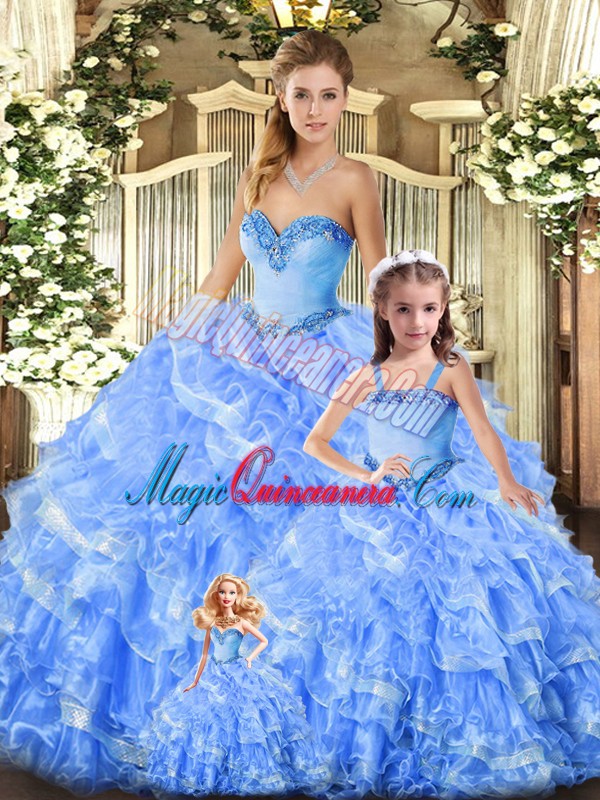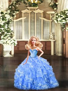 , Decent Floor Length Ball Gowns Sleeveless Baby Blue Sweet 16 Dresses Lace Up
