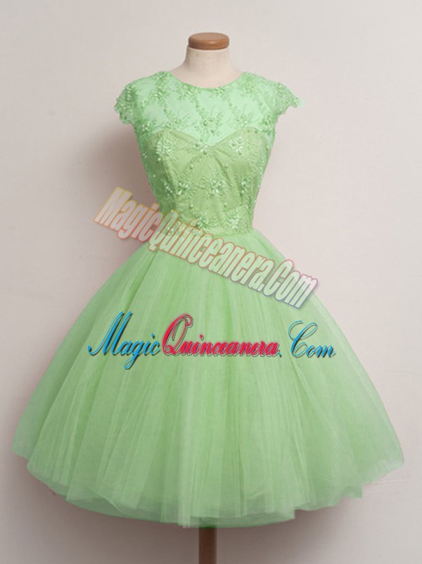 Decent Lace Up Quinceanera Court Dresses Lace Cap Sleeves Knee Length