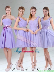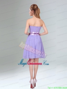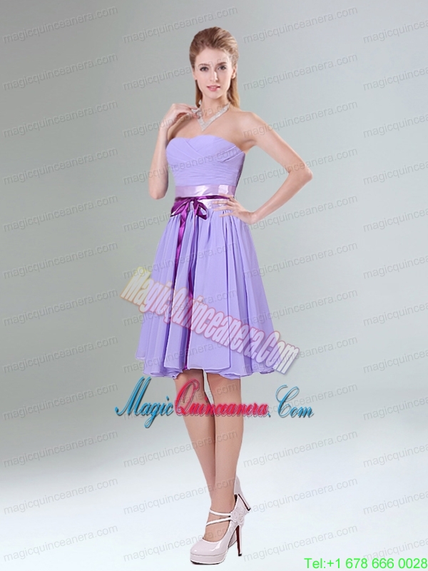 Decent Lavender Ruched Mini Length Mother Dress for Quinceanera with Bowknot Sash