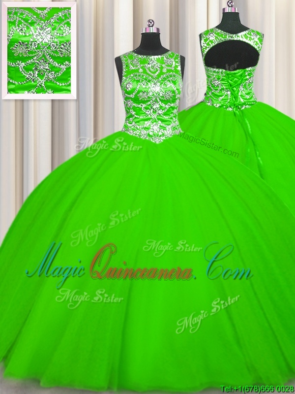 , Decent Scoop Beading Sweet 16 Quinceanera Dress Lace Up Sleeveless Floor Length