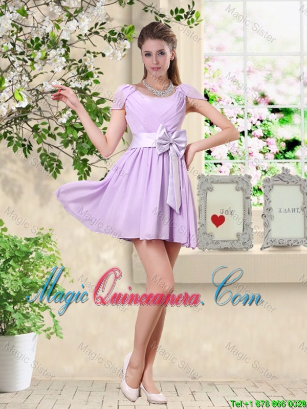 best sweet 16 dama dress for court girls in spring, Decent Scoop Bowknot Dama Dresses with Cap Sleeves