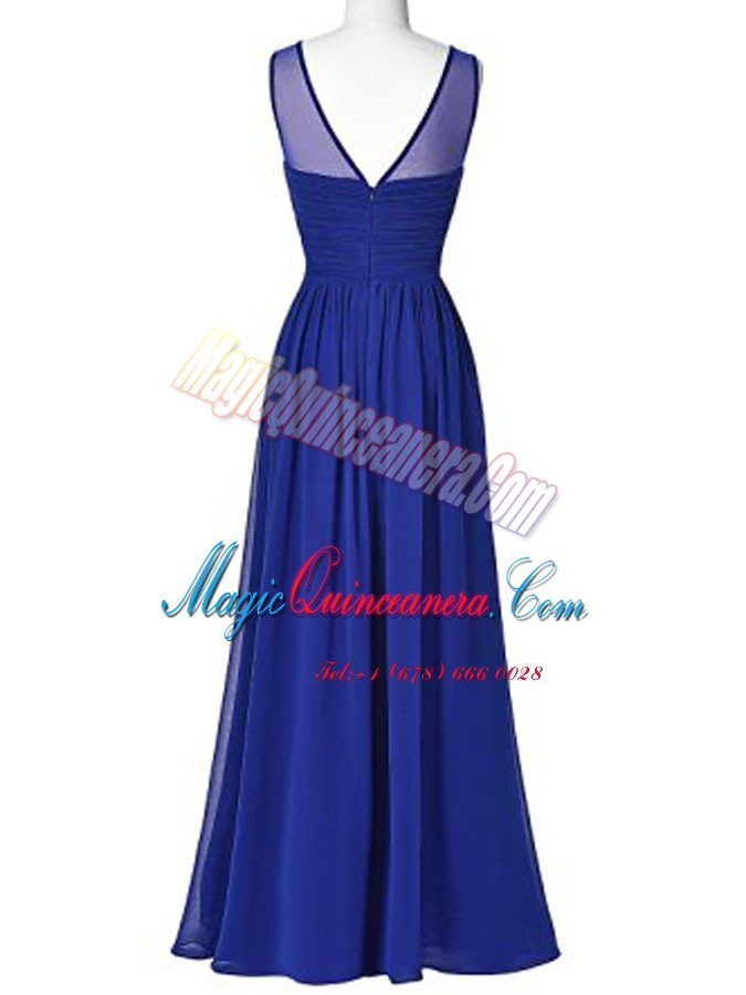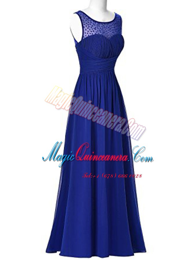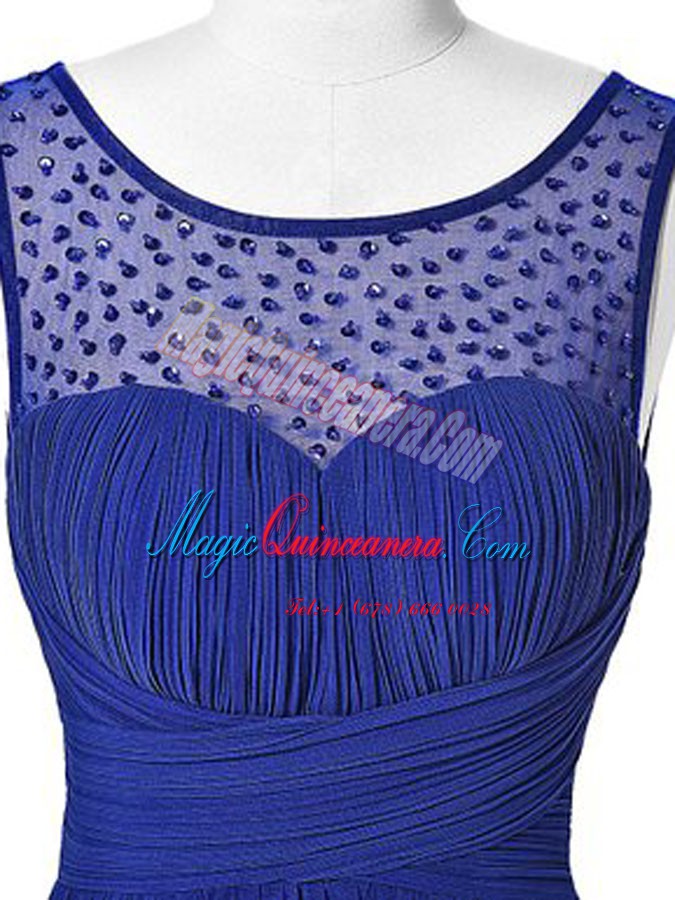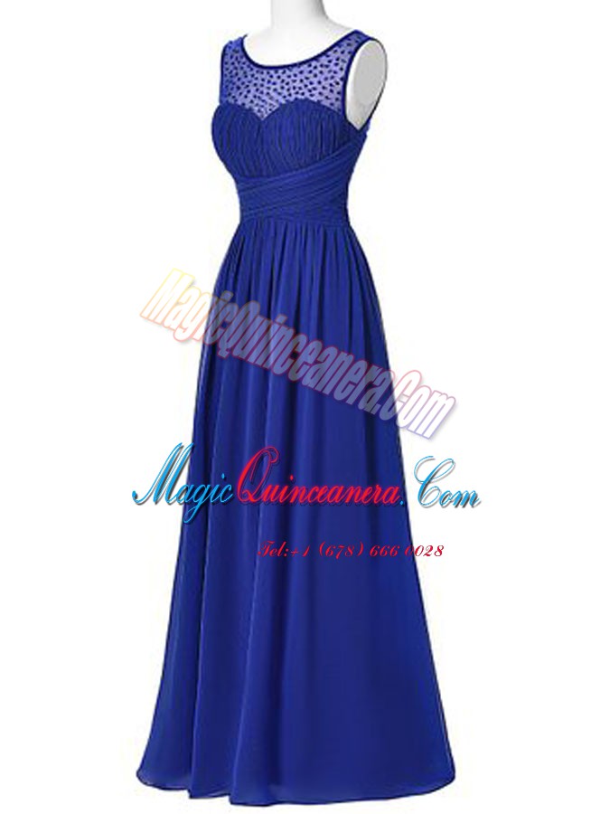 Decent Scoop Royal Blue Empire Beading Mother Of The Bride Dress Zipper Chiffon Sleeveless Floor Length