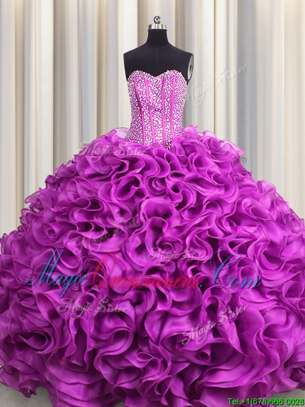 Decent Visible Boning Floor Length Fuchsia 15th Birthday Dress Sweetheart Sleeveless Lace Up