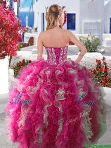 Delicate Four Piece Sweetheart Sleeveless Vestidos de Quinceanera Floor Length Beading White and Hot Pink Organza