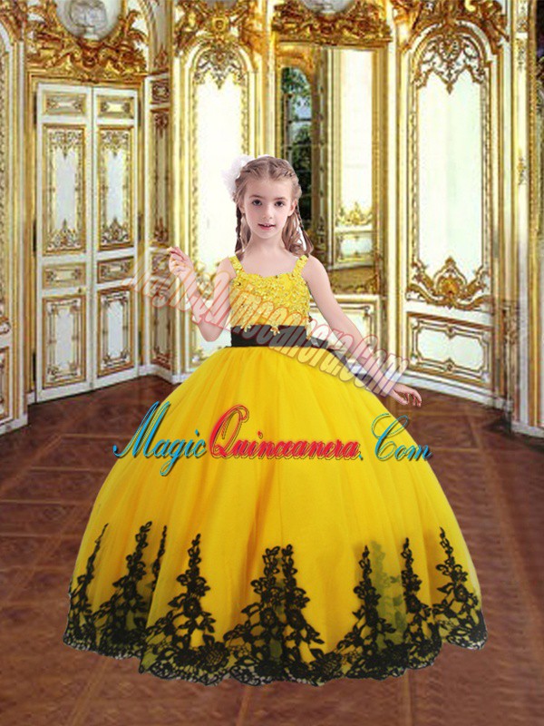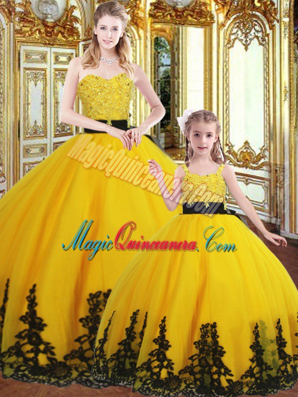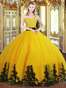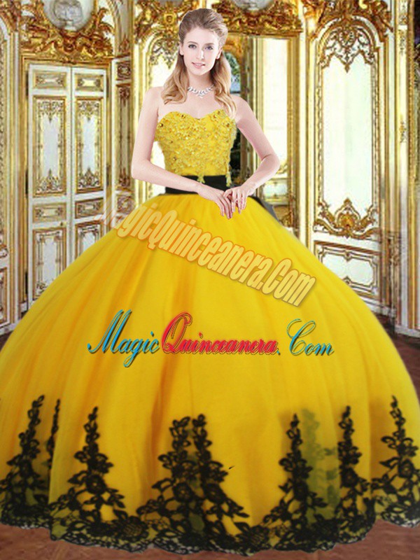 Delicate Gold Quinceanera Dress Military Ball and Sweet 16 and Quinceanera with Beading and Appliques Sweetheart Sleeveless Lace Up