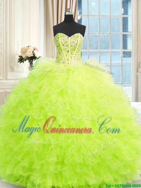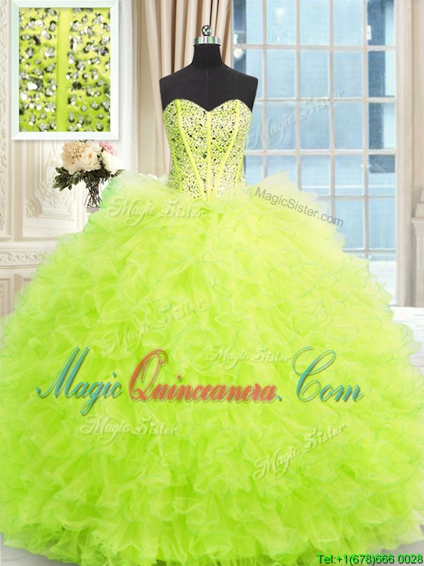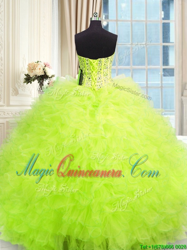 Delicate Strapless Sleeveless Lace Up Quinceanera Dress Yellow Green Tulle