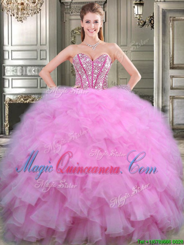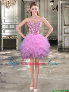 Delicate Three Piece Lilac Ball Gowns Sweetheart Sleeveless Tulle Floor Length Lace Up Beading Quinceanera Dress