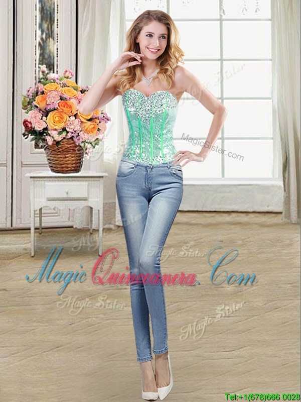 Four Piece Sequins Floor Length Baby Blue Sweet 16 Dresses Sweetheart Sleeveless Lace Up