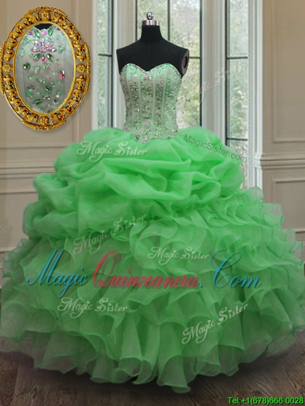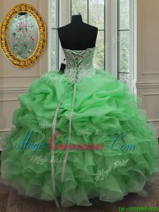 Pick Ups Ball Gowns Quinceanera Dresses Yellow Sweetheart Organza Sleeveless Floor Length Lace Up