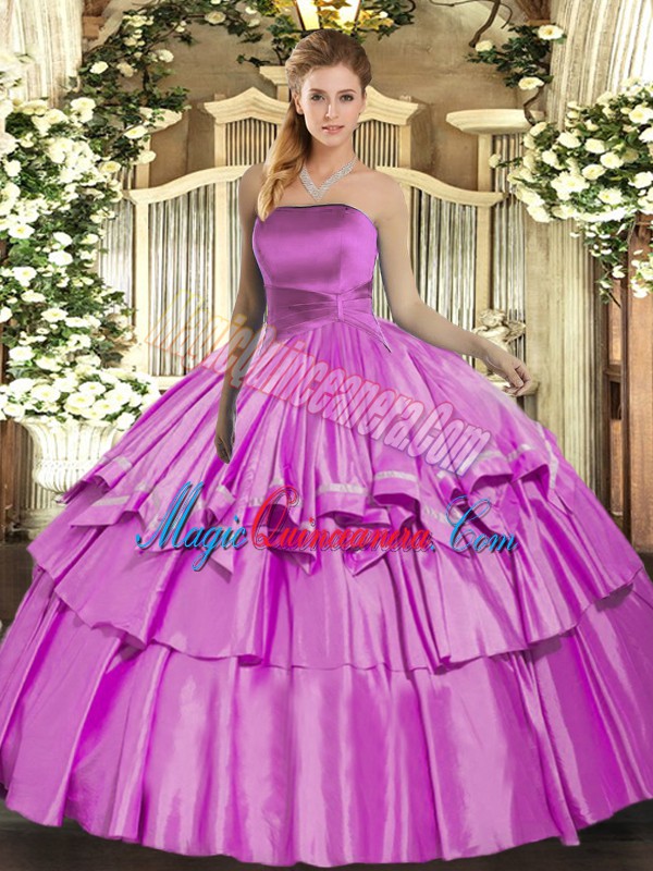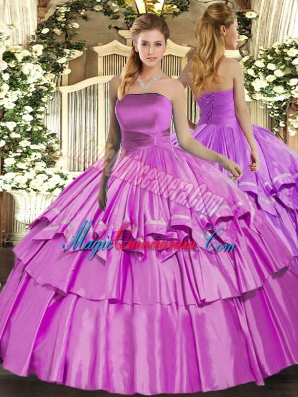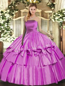 Deluxe Lilac Organza Lace Up Quinceanera Dress Sleeveless Floor Length Ruffled Layers