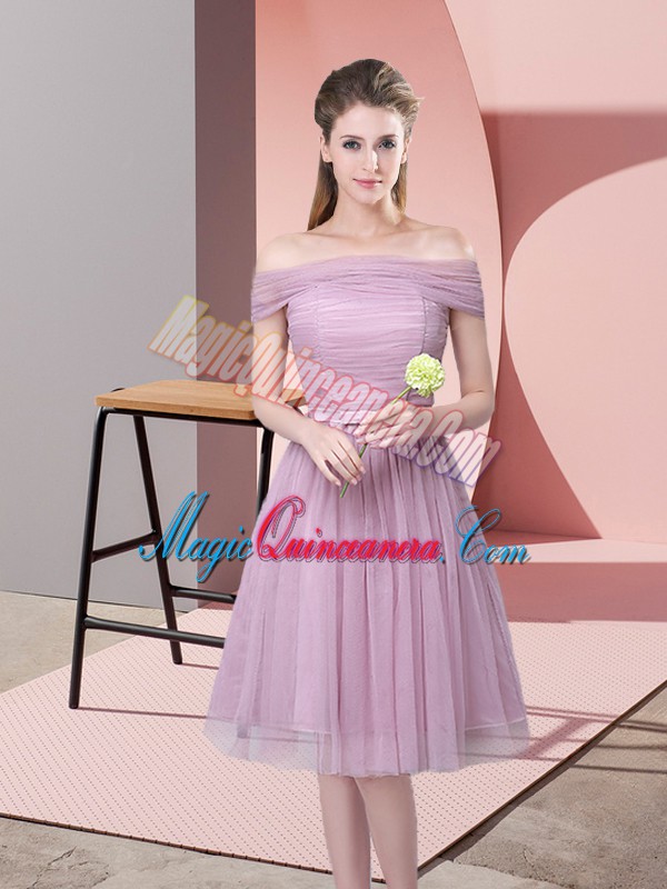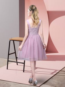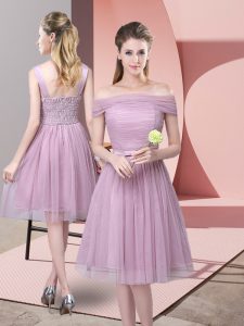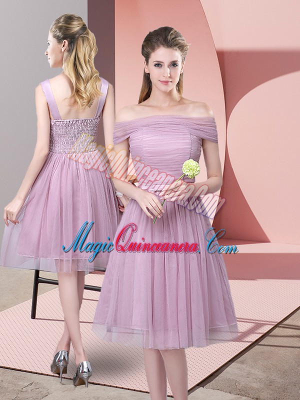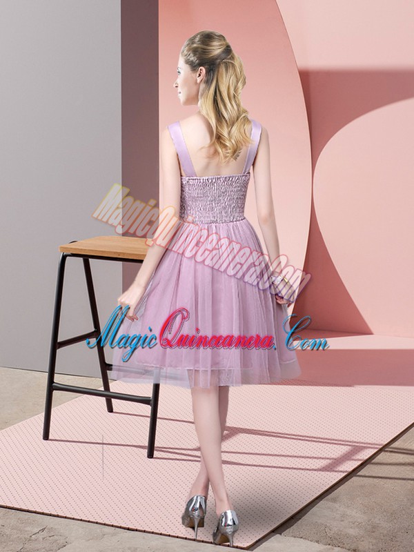 Deluxe Ruching and Belt Court Dresses for Sweet 16 Lavender Side Zipper Sleeveless Knee Length