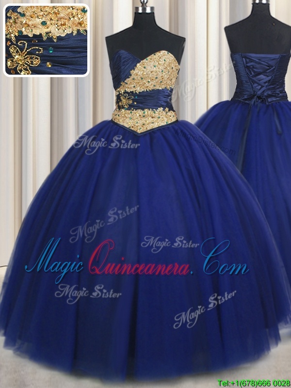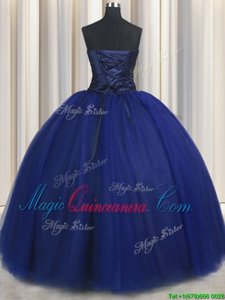 Deluxe Sweetheart Sleeveless Lace Up 15 Quinceanera Dress Navy Blue Tulle