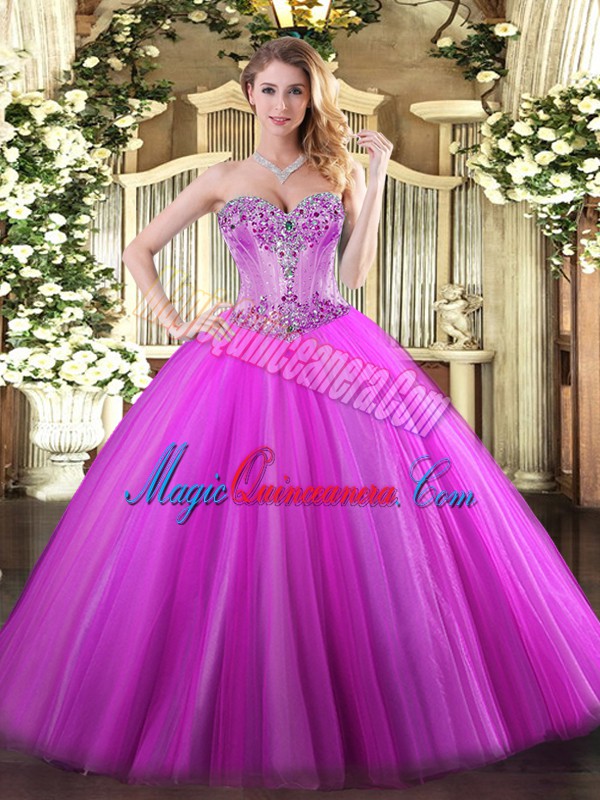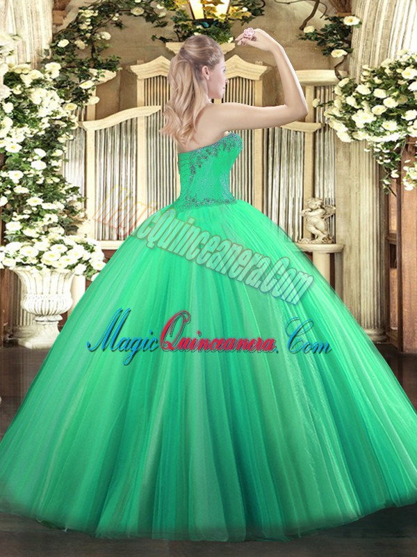 , Deluxe Sweetheart Sleeveless Tulle Sweet 16 Dress Beading Lace Up