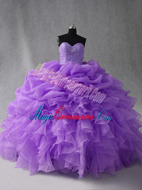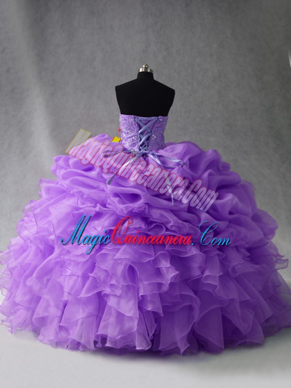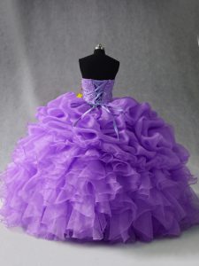 Designer Ball Gowns Quinceanera Dresses Lavender Sweetheart Organza Sleeveless Floor Length Lace Up