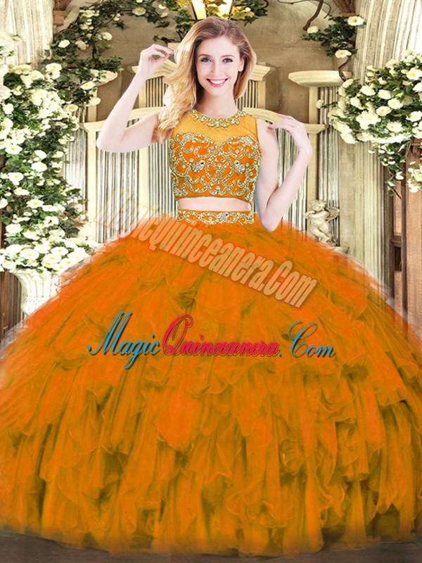 , Designer Floor Length Rust Red Sweet 16 Quinceanera Dress Scoop Sleeveless Zipper