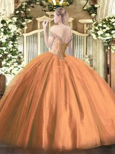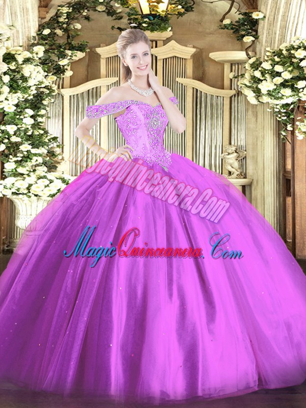 Designer Lilac Tulle Lace Up Off The Shoulder Sleeveless Floor Length Quinceanera Gowns Beading