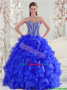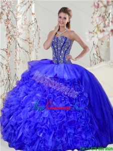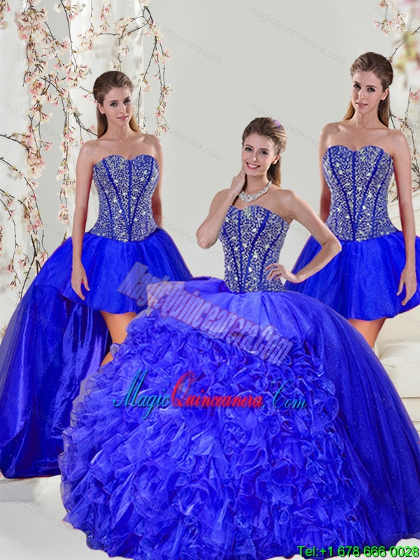 , Detachable and New style Beading and Ruffles Sweet 16 Dresses in Royal Blue for 2015