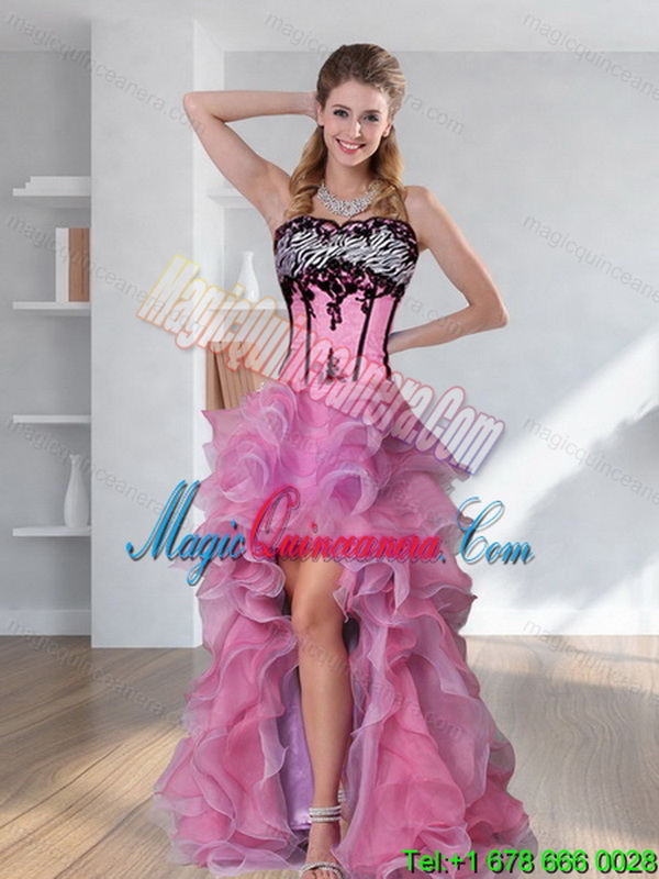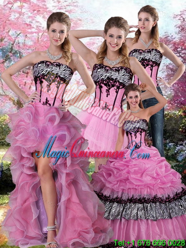 , Detachable Zebra Printed Multi Color Detachable Quinceanera Dress with Pick Ups and Appliques