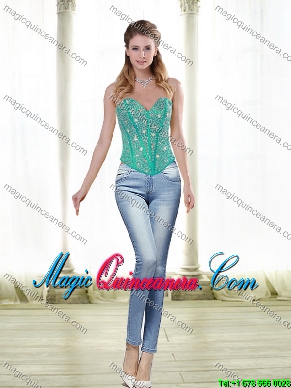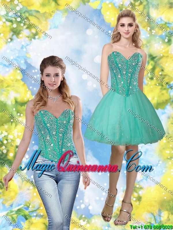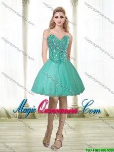 Discount 2015 Beading and Appliques Sweetheart Dama Dresses in Turquoise