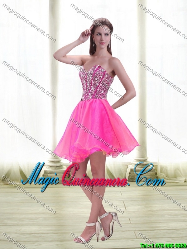 Discount A Line Beading 2015 Dama Dresses in Hot Pink