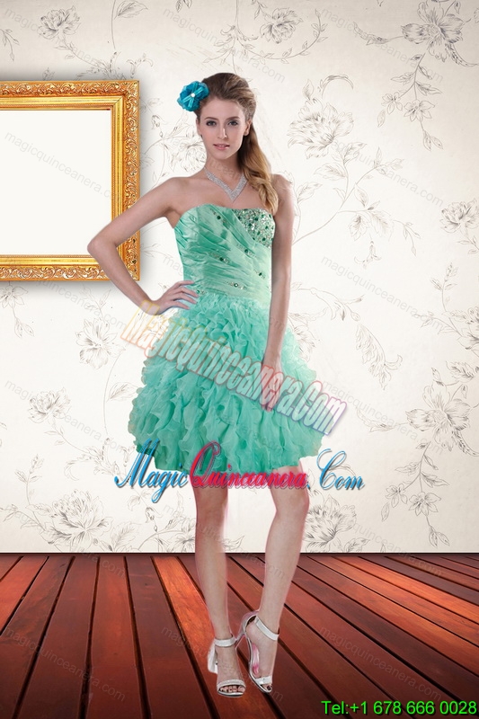 Discount Apple Green Dama Dresses with Appliques and Ruffles
