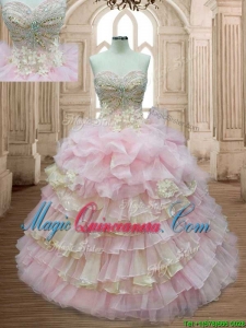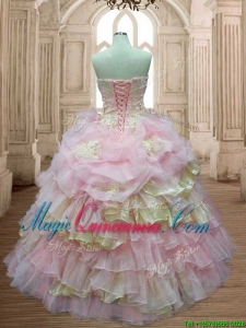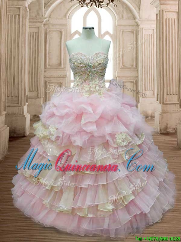 Discount Applique and Ruffled Layers Quinceanera Dress in Baby Pink and Yellow
