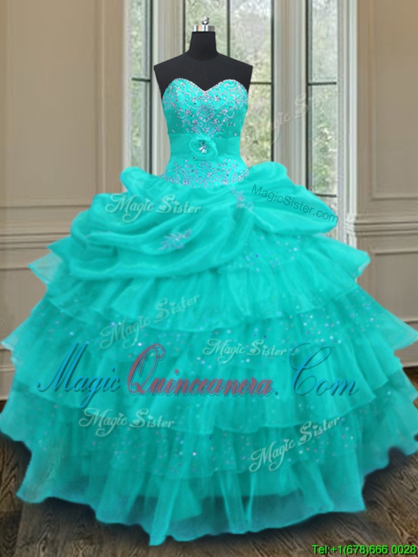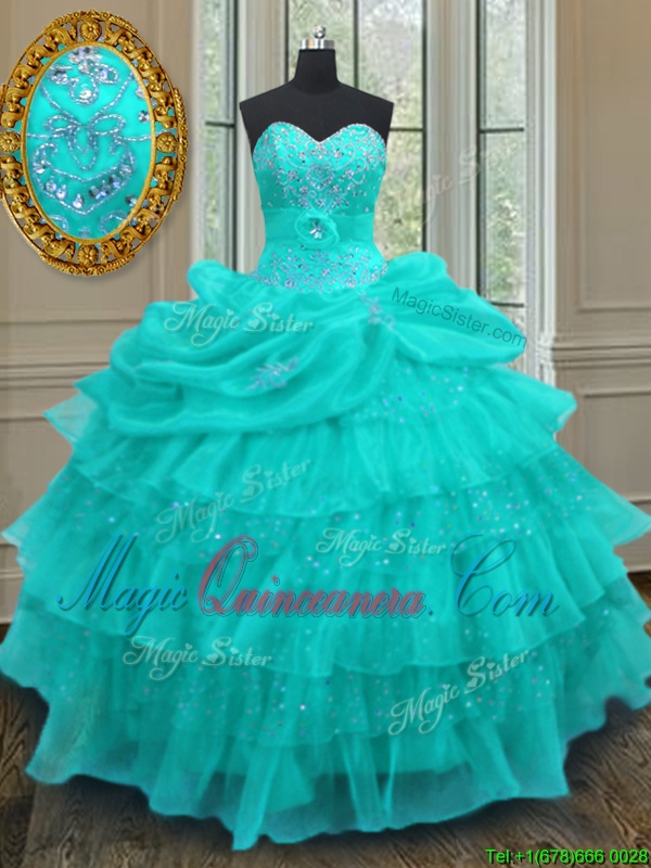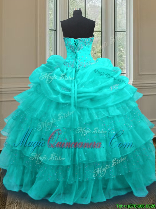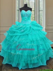 Discount Aqua Blue Sleeveless Beading and Ruffled Layers and Pick Ups Floor Length Sweet 16 Quinceanera Dress