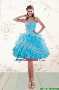 ornate 2016 attractive dama dresses with ruching, Discount Baby Blue Dama Gown with Beading and Ruffles
