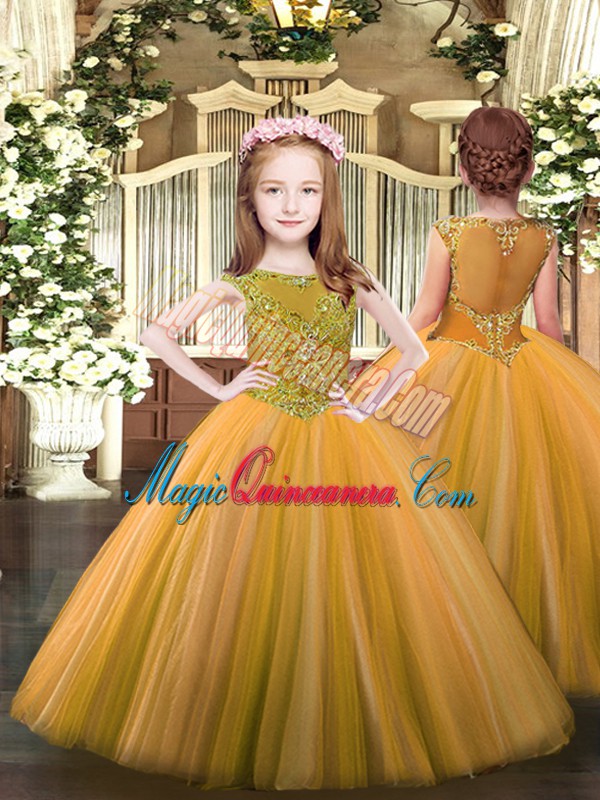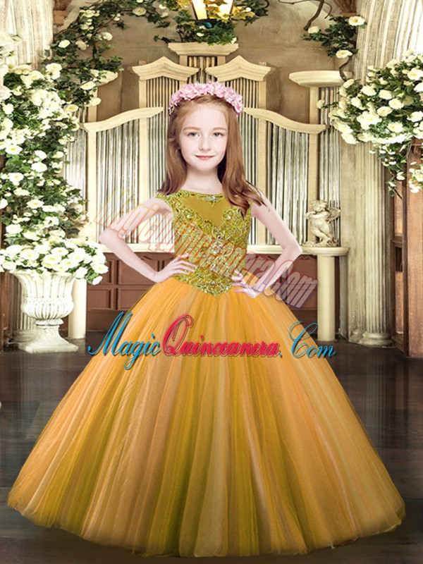 , Discount Beading Pageant Dress for Womens Orange Zipper Sleeveless Floor Length