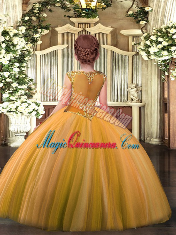 Discount Beading Pageant Dress for Womens Orange Zipper Sleeveless Floor Length