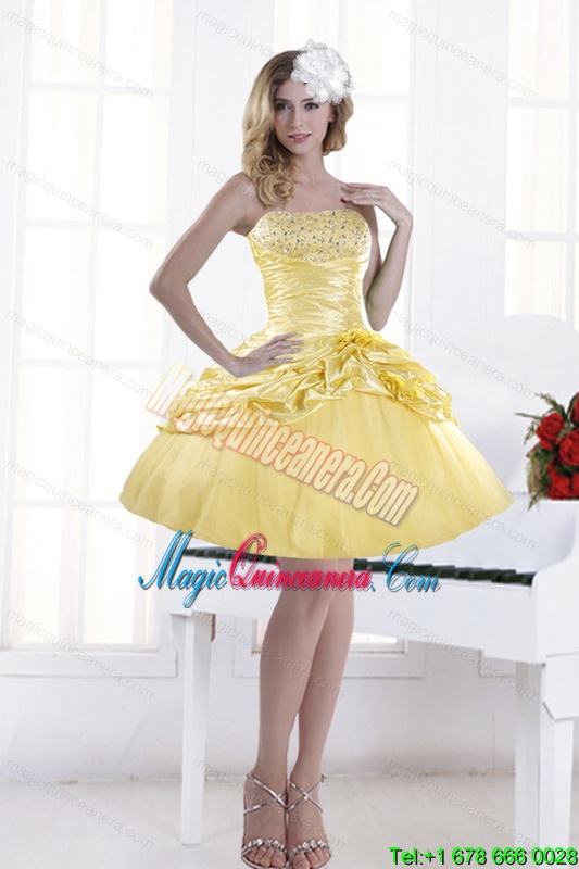 Discount Beading Strapless 2015 Dama Dresses with Pick Ups
