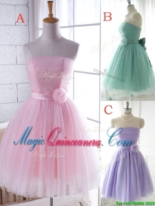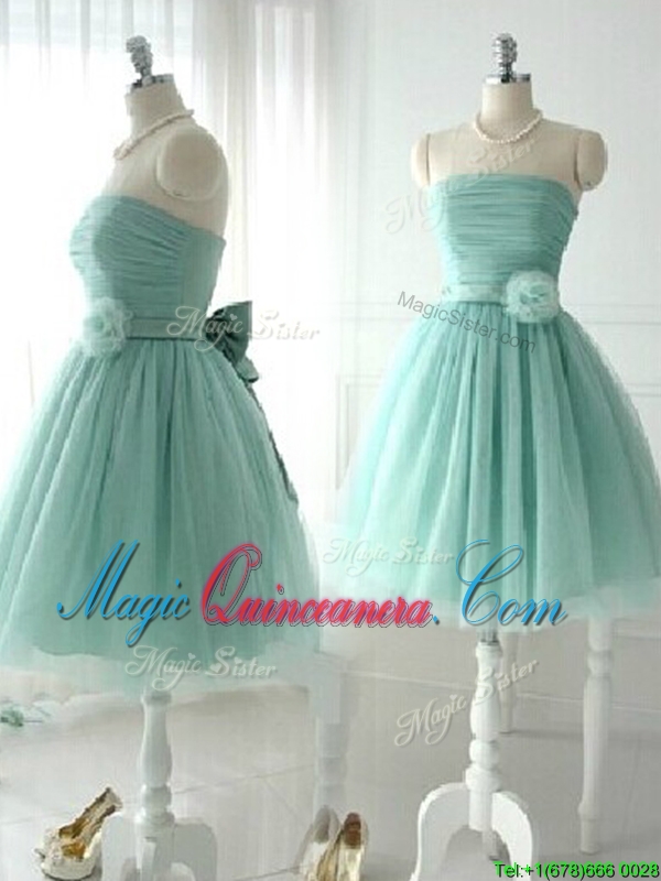 , Discount Handcrafted Flower Short Dama Dress in Apple Green