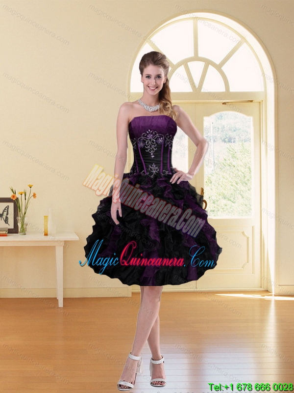 Discount Multi Color High Low Strapless Beading Ruffles Short Dama Dresses for 2015