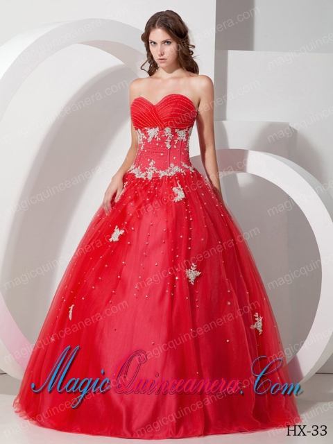 beautiful sweetheart beading and appliques quinceanera dresses in red,