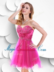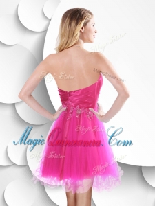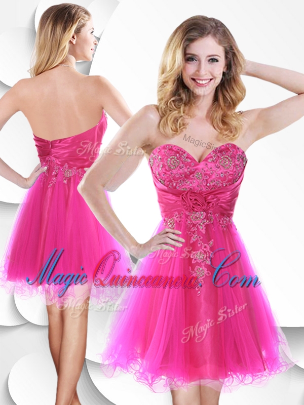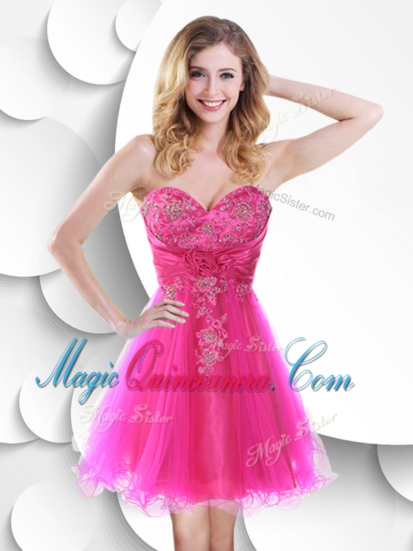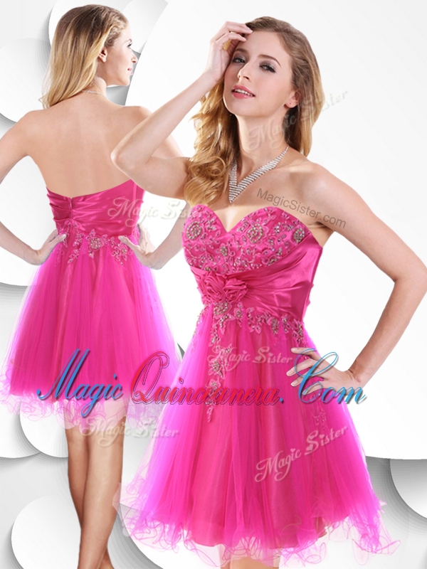 Discount Short Hot Pink Dama Dress with Beading and Hand Made Flowers