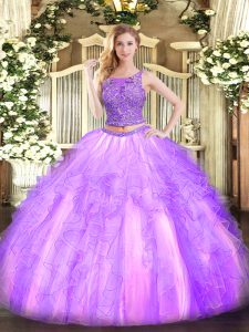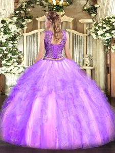 , Discount Sleeveless Beading and Ruffles Lace Up Vestidos de Quinceanera