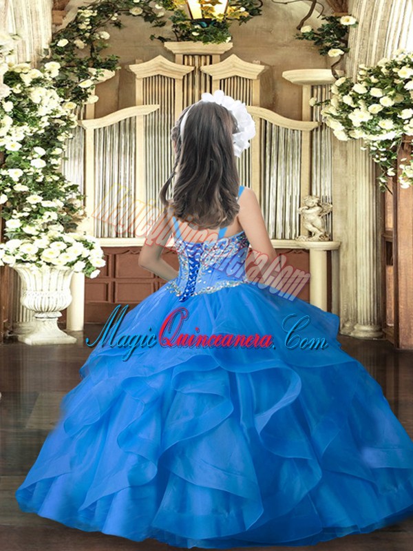 Discount Straps Sleeveless Lace Up Little Girl Pageant Gowns Aqua Blue Tulle