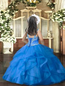 , Discount Straps Sleeveless Lace Up Little Girl Pageant Gowns Aqua Blue Tulle