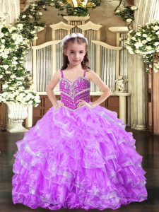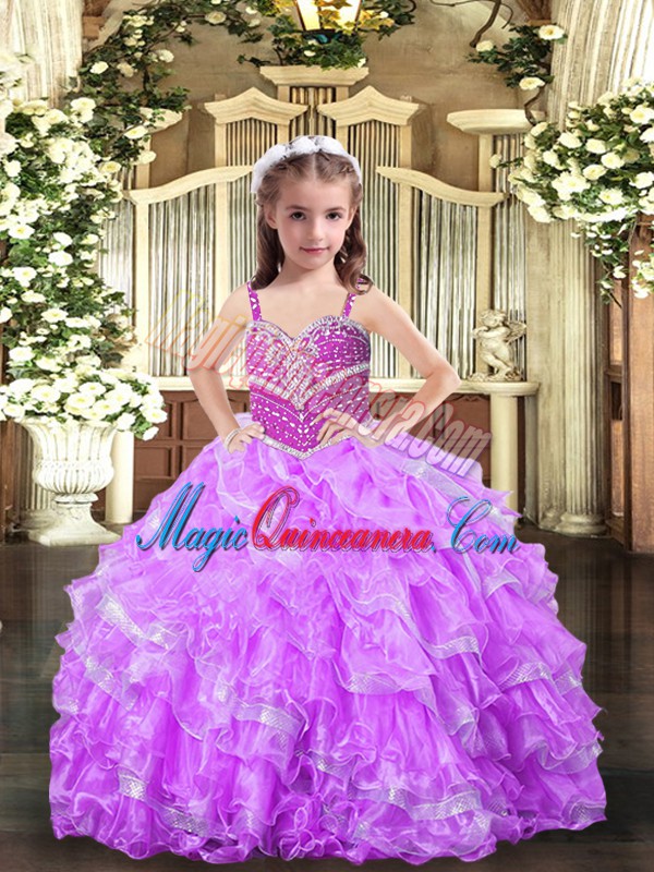 , Discount Straps Sleeveless Lace Up Little Girls Pageant Dress Lilac Organza